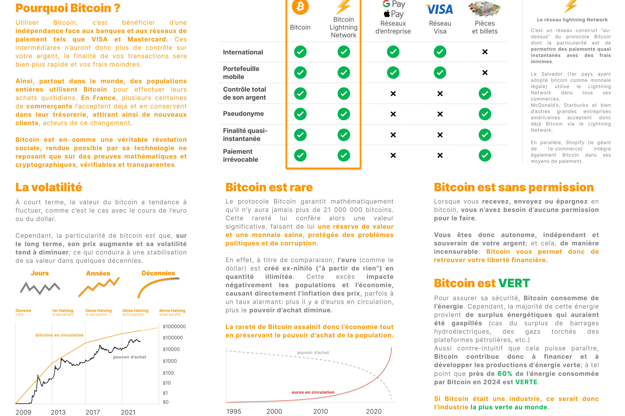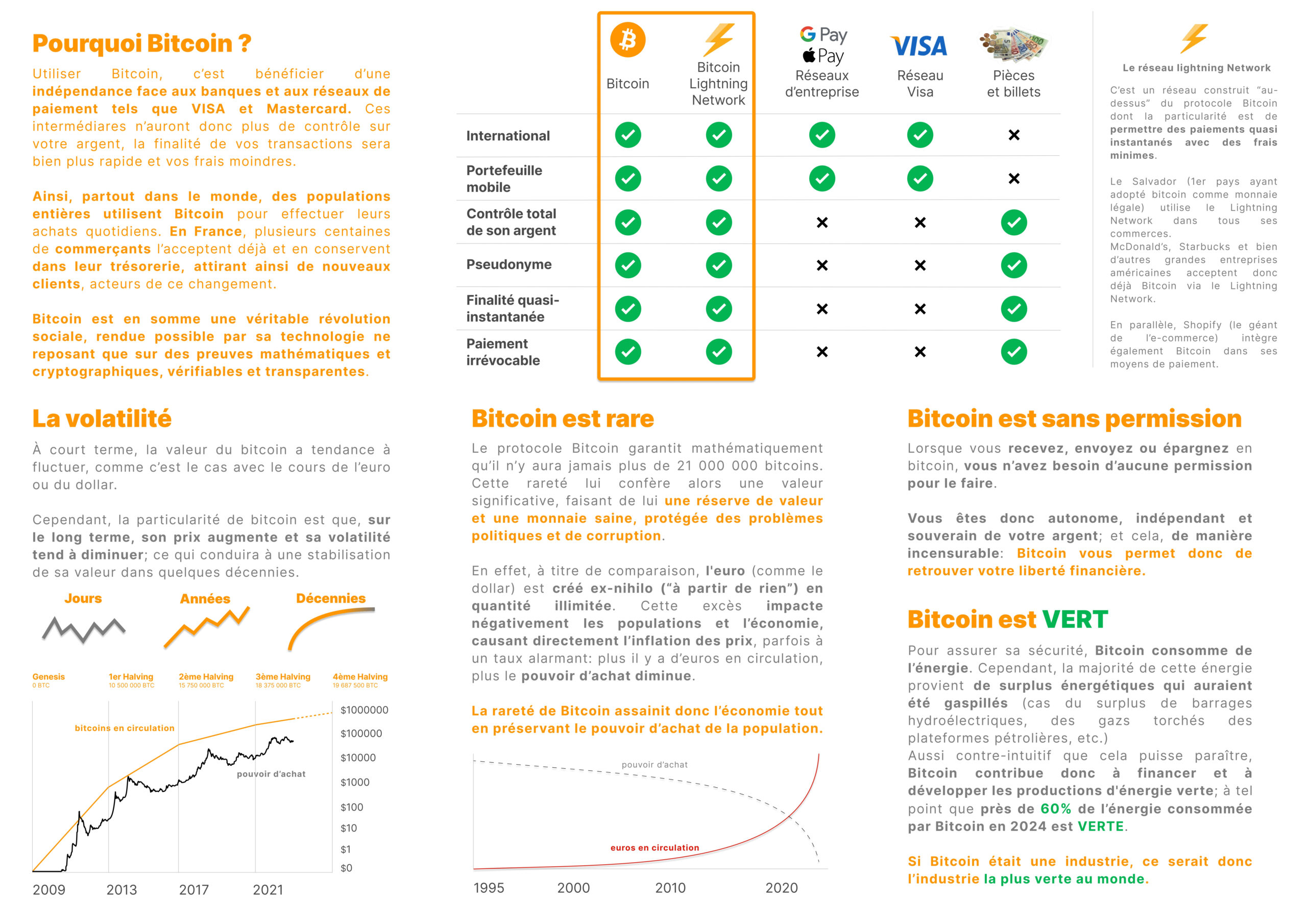 Adopter Bitcoin dans son commerce, c’est proposer à ses clients une solution de paiement moderne, rapide et sécurisée, tout en attirant une clientèle avisée et fidèle, soucieuse de soutenir les entreprises innovantes. De plus, contrairement aux paiements traditionnels, les transactions en bitcoin sont instantannées et ne nécessitent aucun intermédiaire, ce qui réduit les frais bancaires et renforce votre autonomie financière. Chaque paiement est donc définitif et sécurisé, vous garantissant une meilleure maîtrise de votre activité.