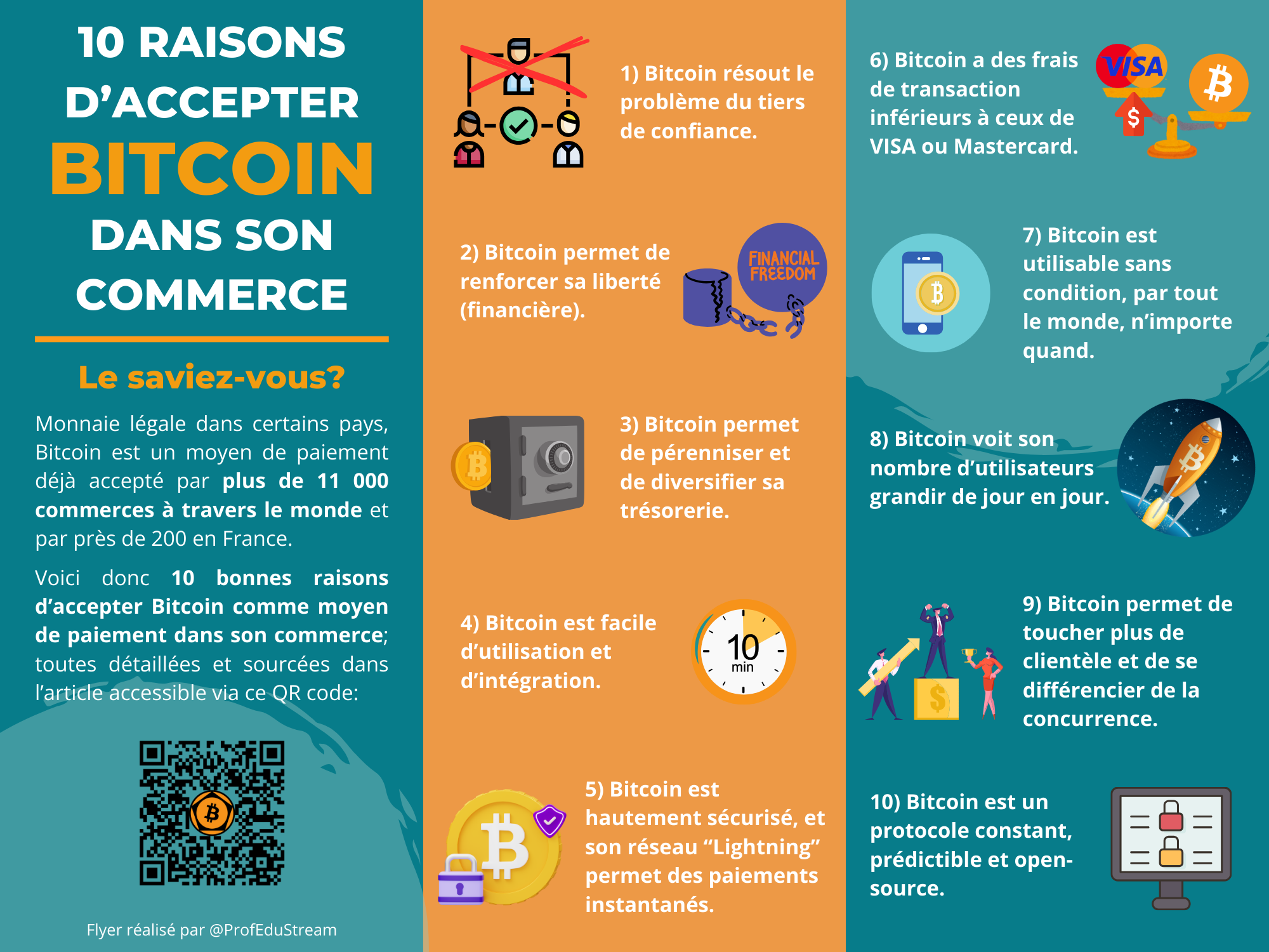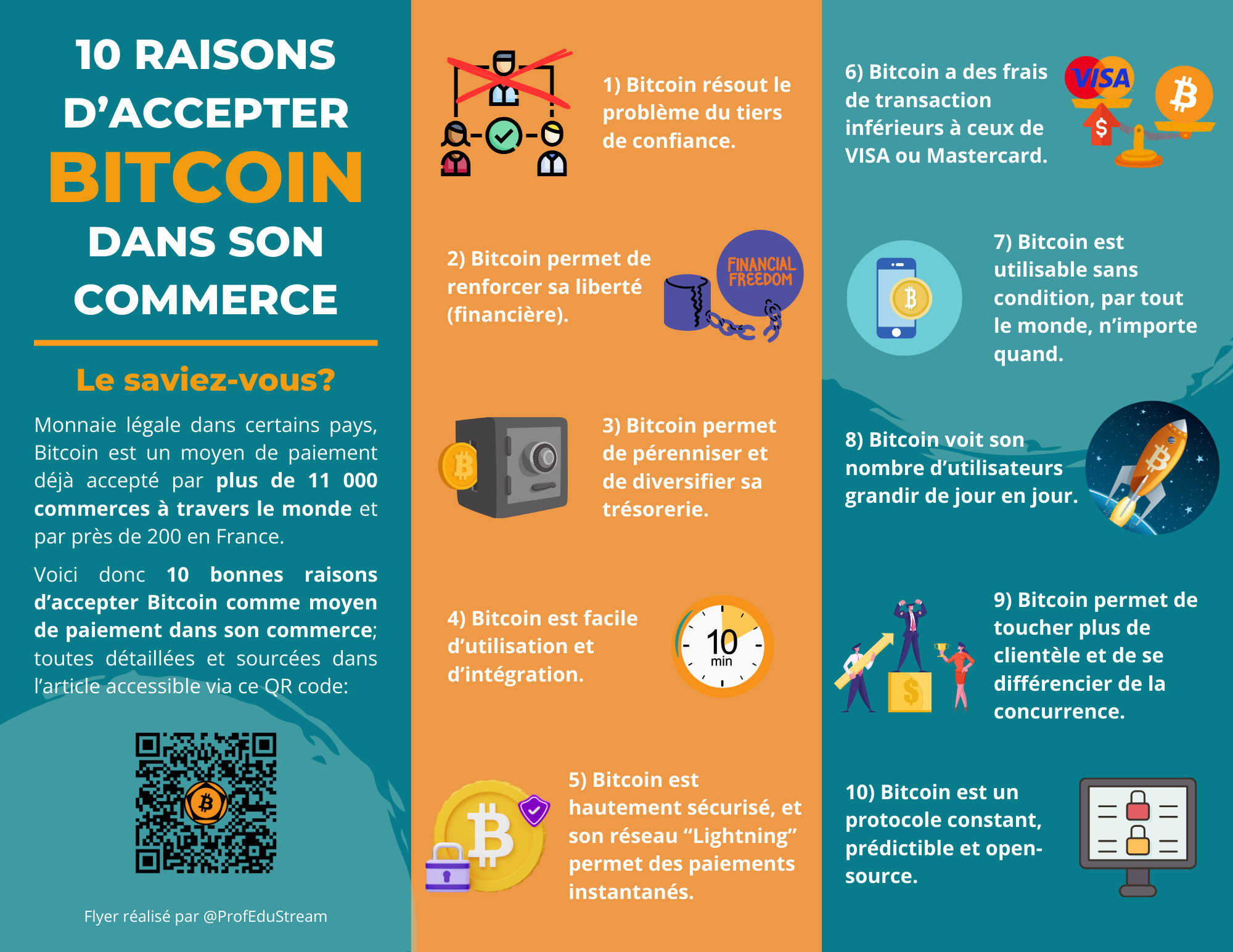 Pour ce faire, l’association a conçu des tutoriels et flyers permettant d’accepter Bitcoin dans son commerce en une vingtaine de minutes, gratuitement et en toute autonomie. De plus, si vous avez besoin d’aide, l’association se tient disponible pour vous accompagner et vous former.